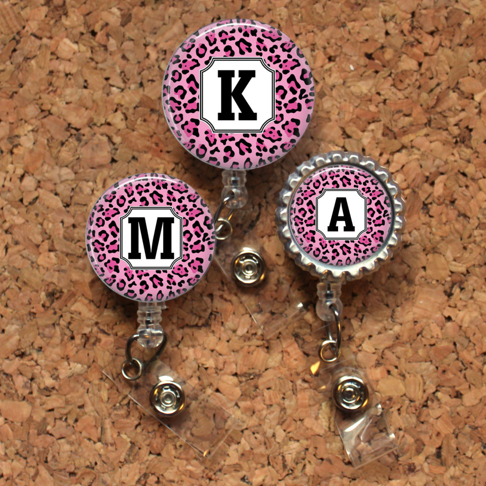 Animal Print Badge Reel, Pink Leopard Initial ID Badge, Pink Lanyard, Retractable Name Holder, Nurse, Teacher, Personalized, Mylar