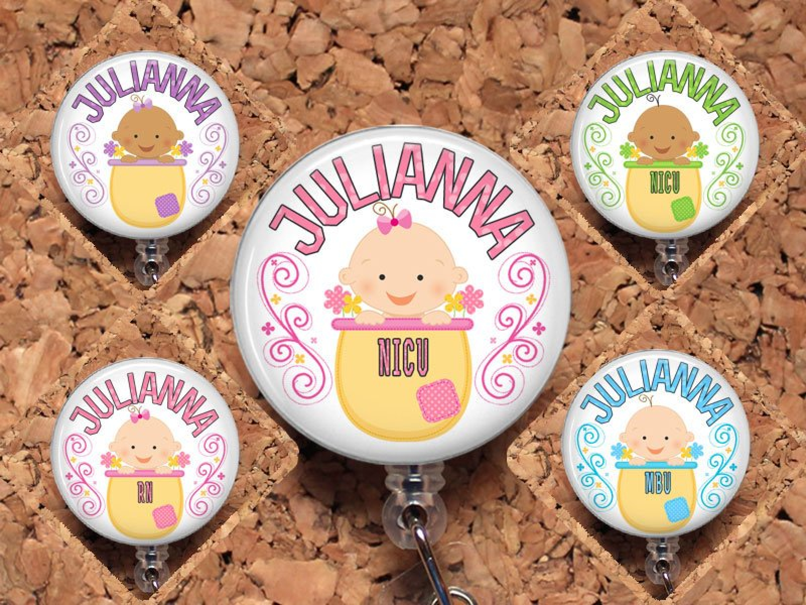 Badge Reel ID Holder Cute Baby Personalized Lanyard Carabiner Baby Badge Reel NICU MBU Maternity Ward Mother Baby Unit Pediatrics Mylar