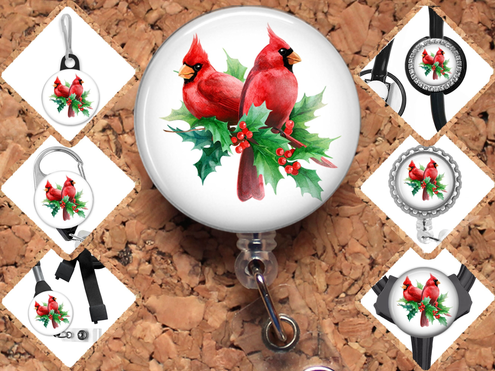 Cardinals Badge Reel, Retractable Lanyard Badge Holder, Carabiner, Christmas Red Birds Id Holder, Gift for Nurses Mylar 8063
