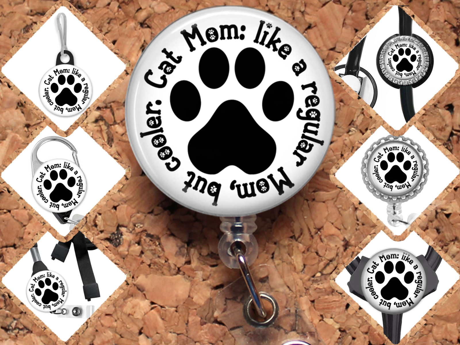 Cat Mom Badge Reel Id Holder, Badge Pin, Magnet, Lanyard, Stethoscope Tag 8183