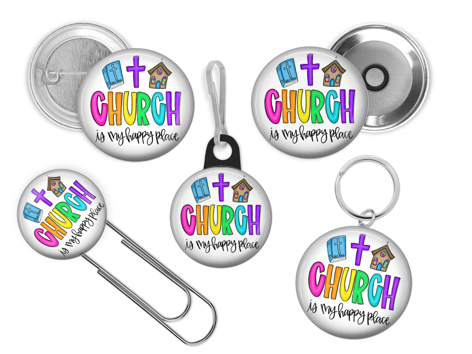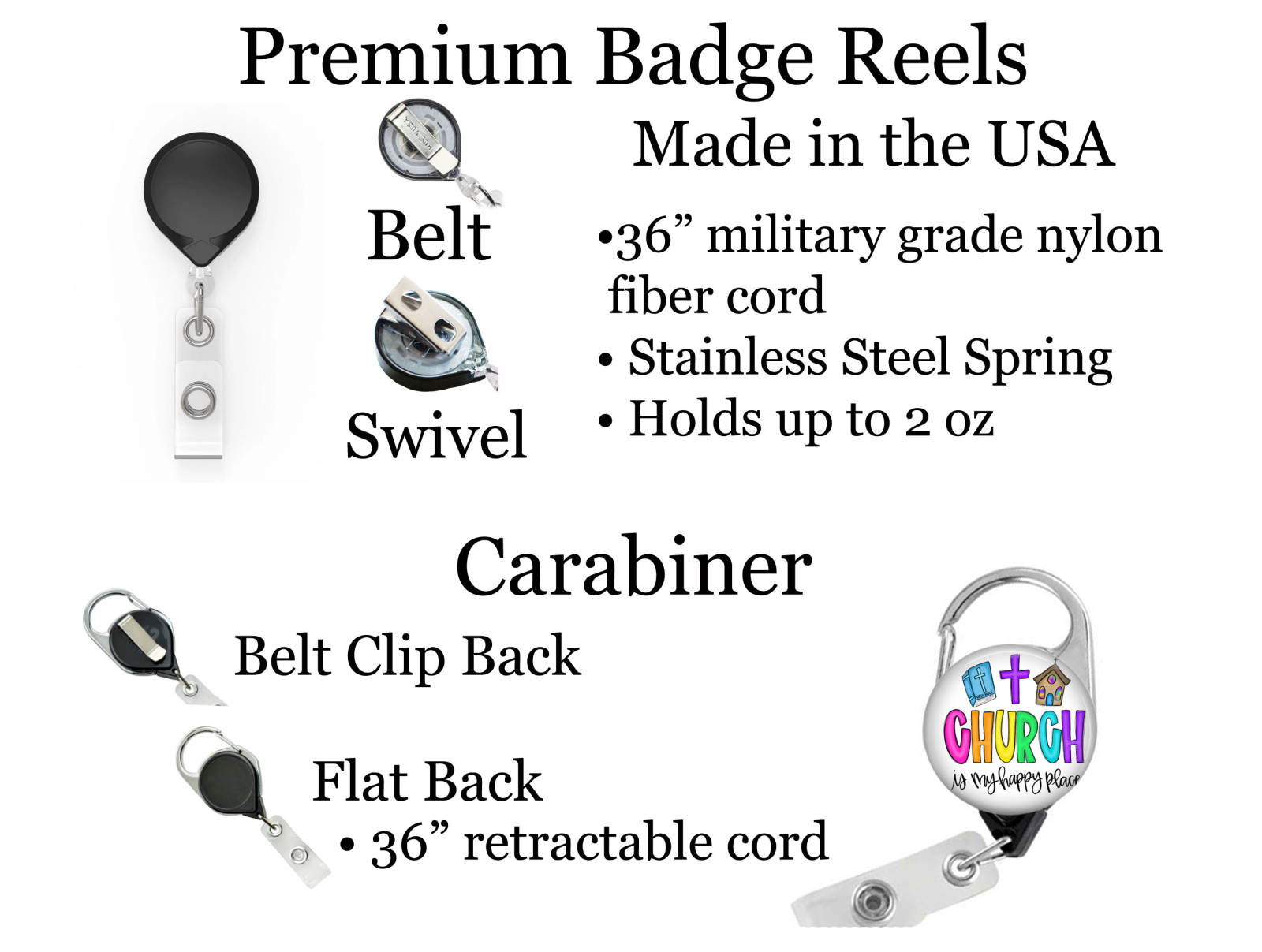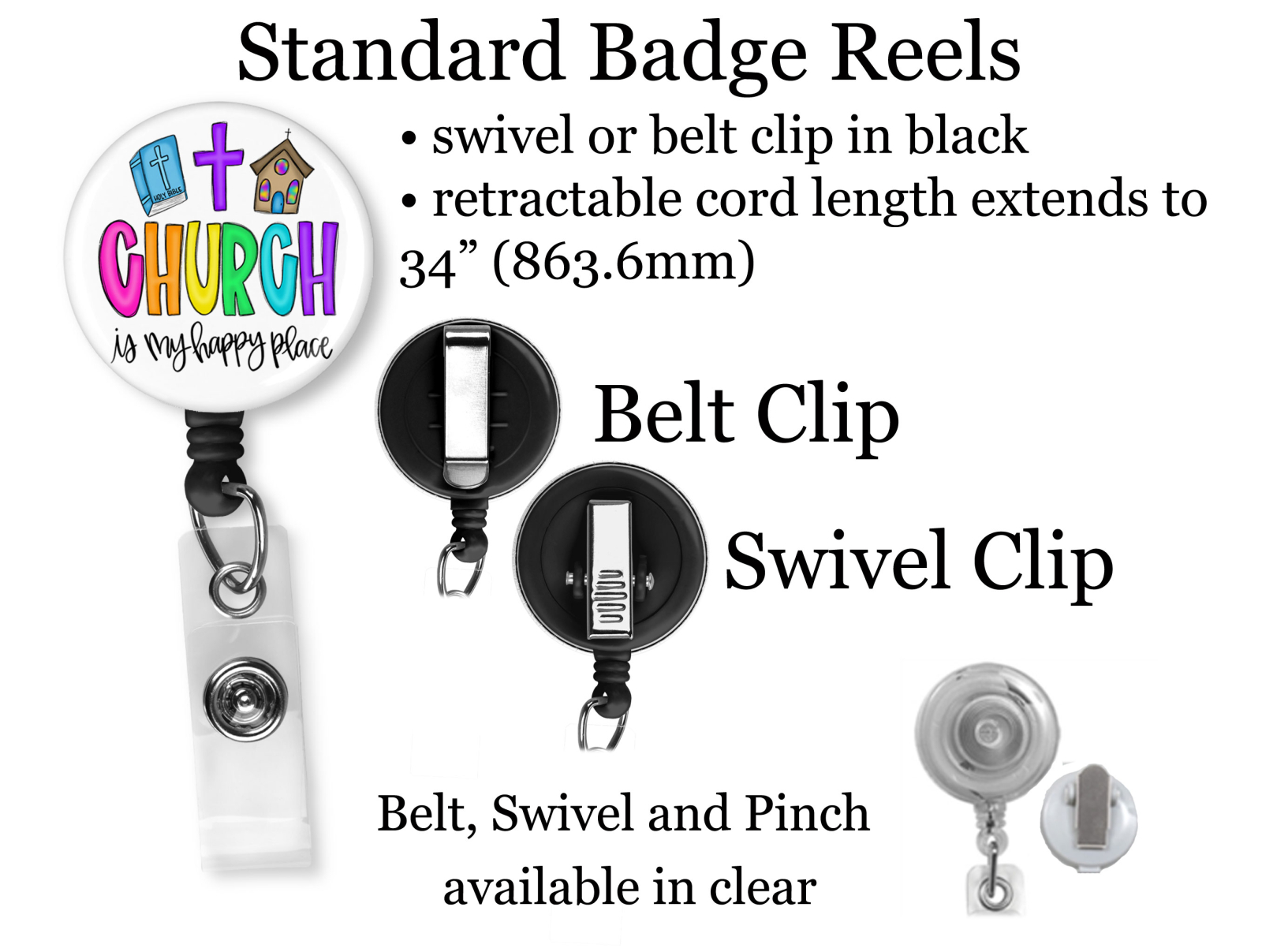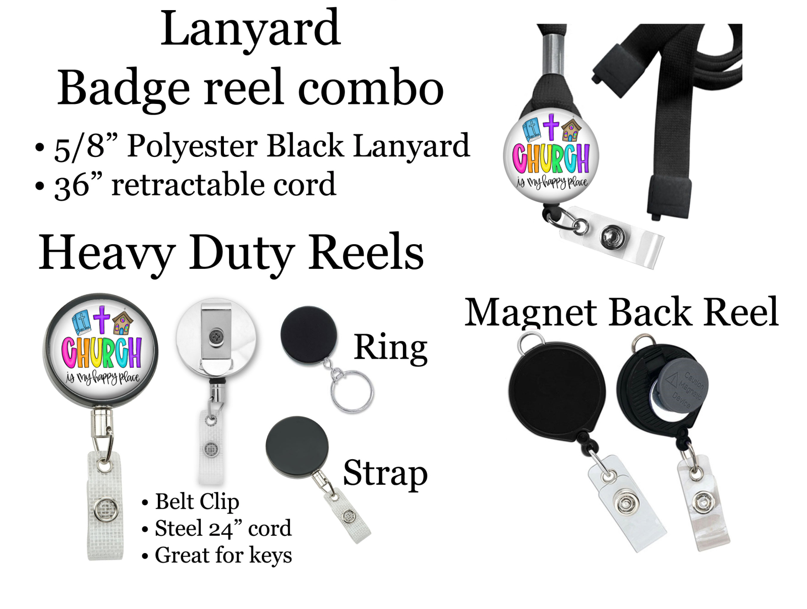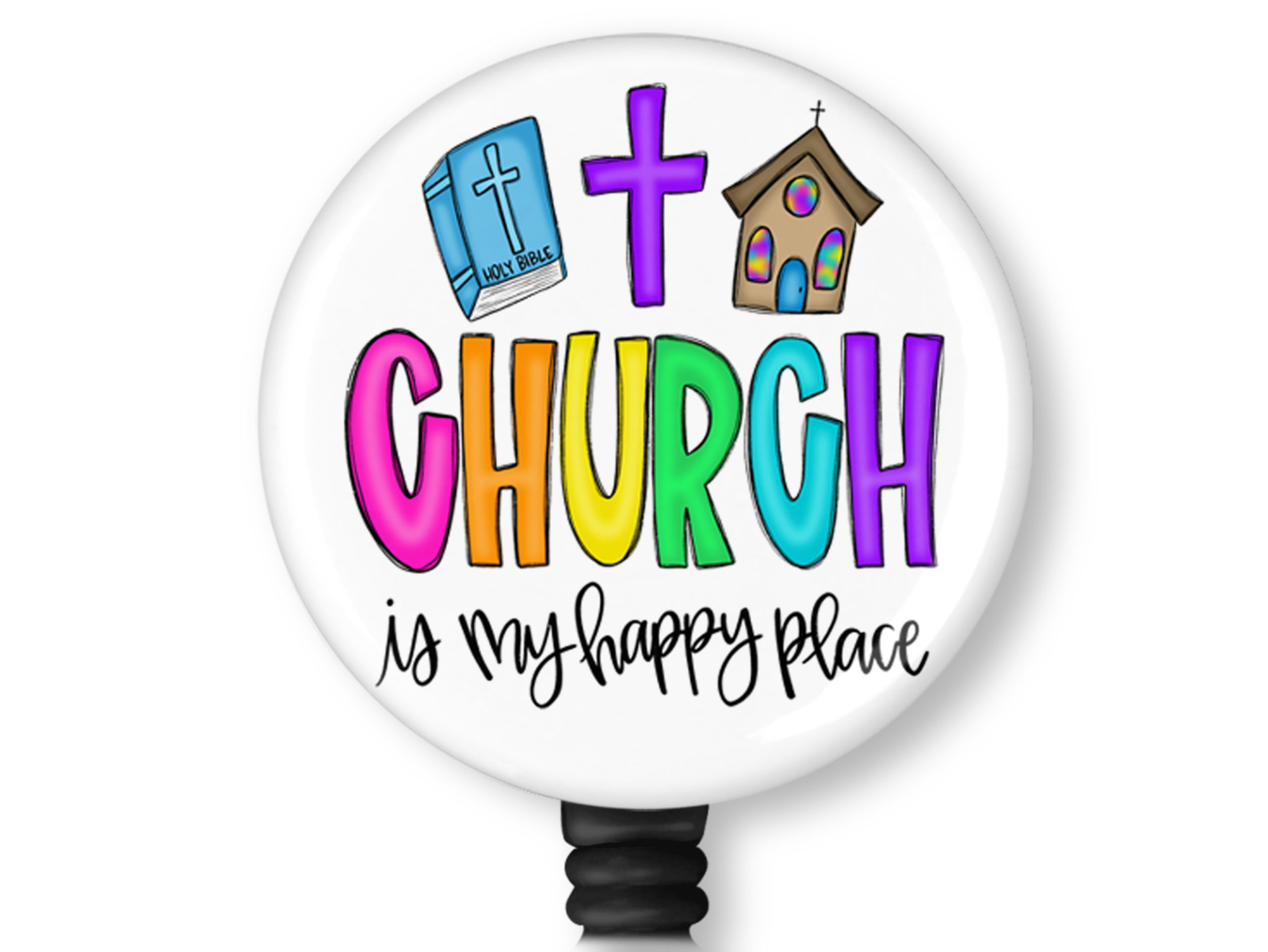 Church is My Happy Place Badge Reel Id Holder 8119