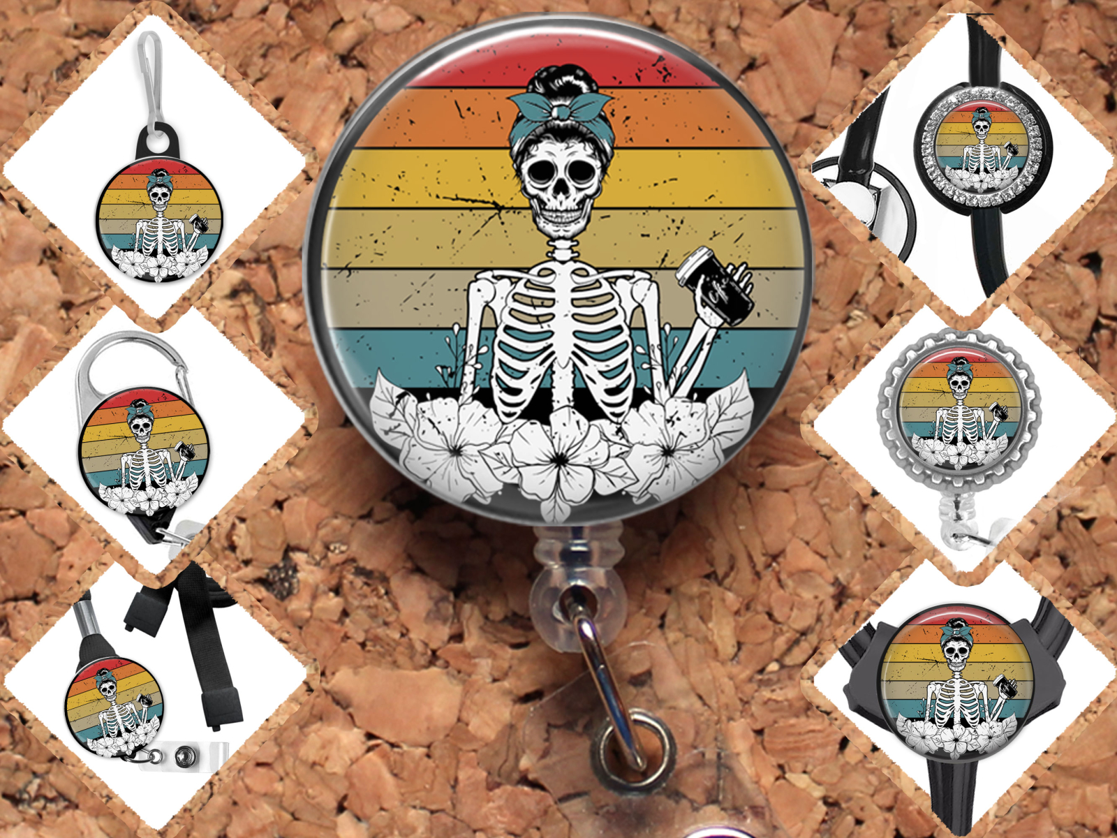 Coffee Skeleton Badge Reel Id Holder, Badge Pin, Magnet, Lanyard, Stethoscope Tag 8174