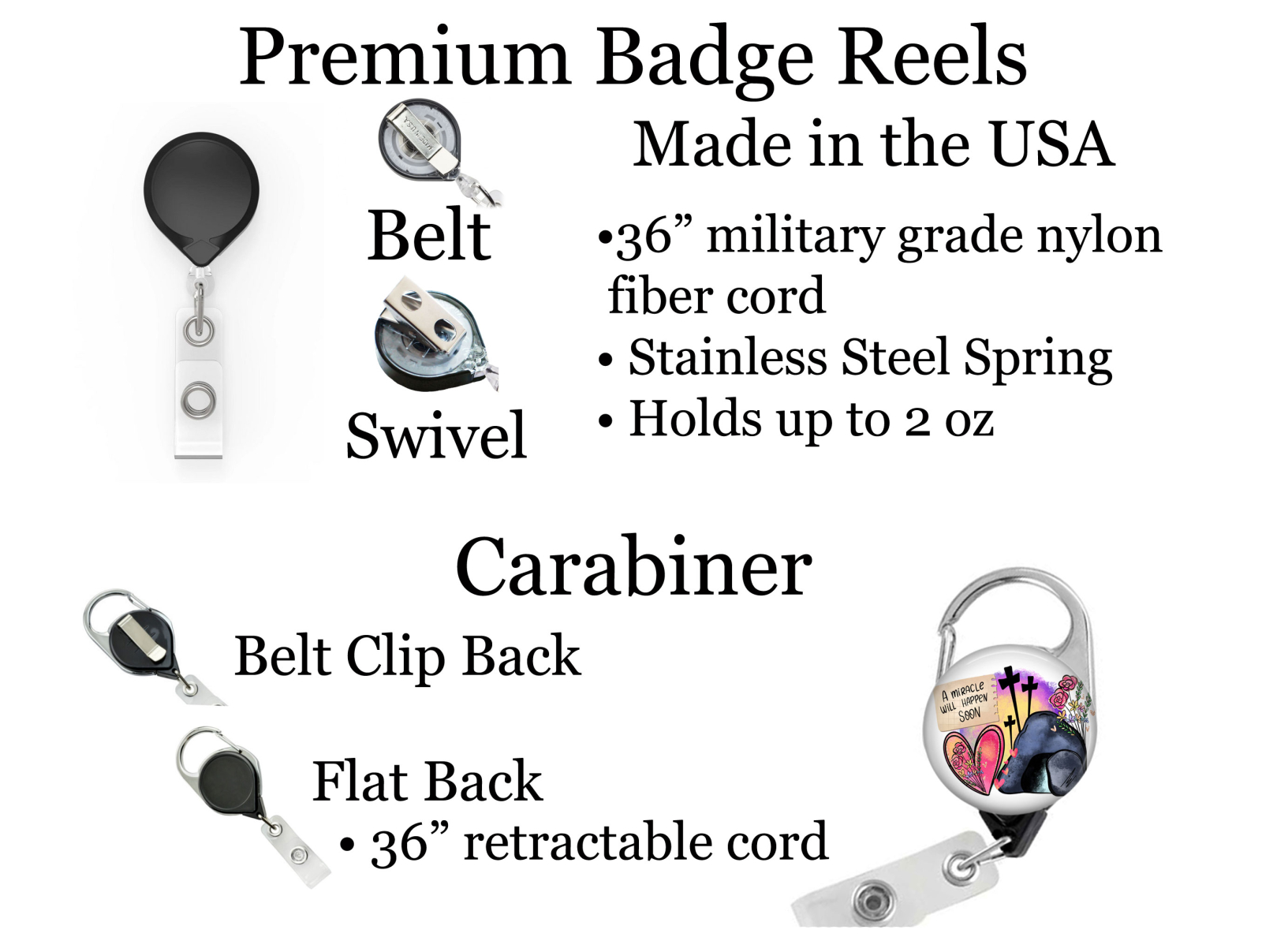 • 36" retractable military grade type-II braided nylon fiber cord holds up to 2oz.