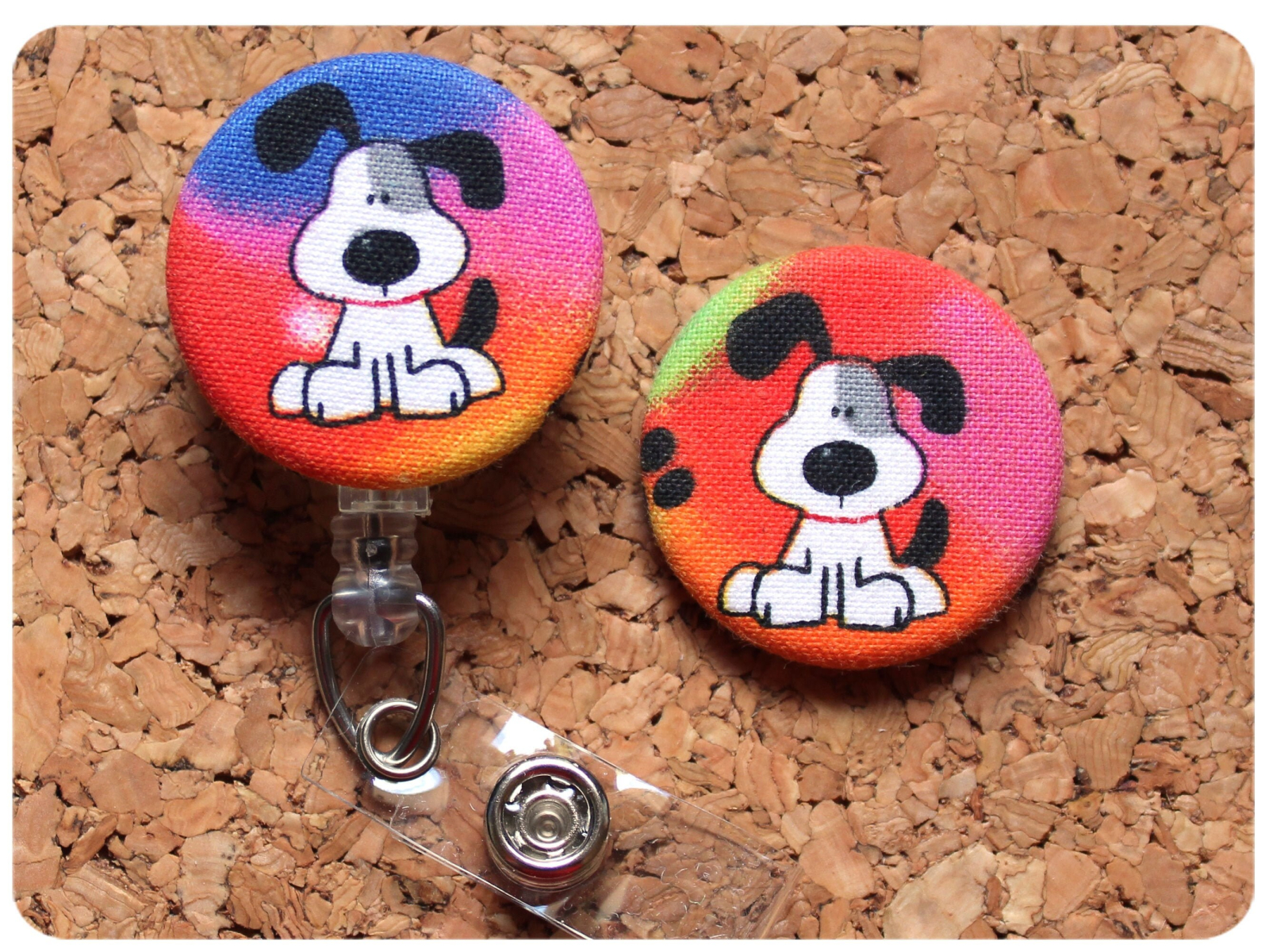 Fabric Puppy Badge Reel, Retractable Lanyard ID Holder, Brooch Pin, Key Ring, Zipper Pull, Bookmark Planner Clip, Magnet F113