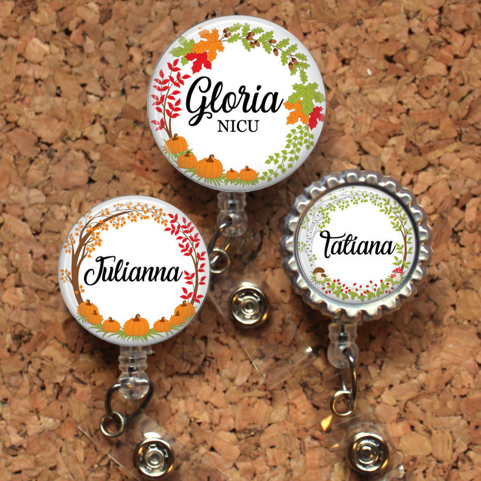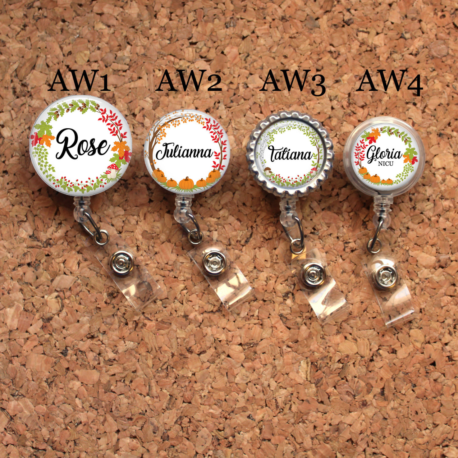 Fall Badge Reel, Personalized Retractable ID Holder, Lanyard, Badge Pull, Card Holder, Carabiner, Stethoscope Tag, The Badge Patch, Mylar