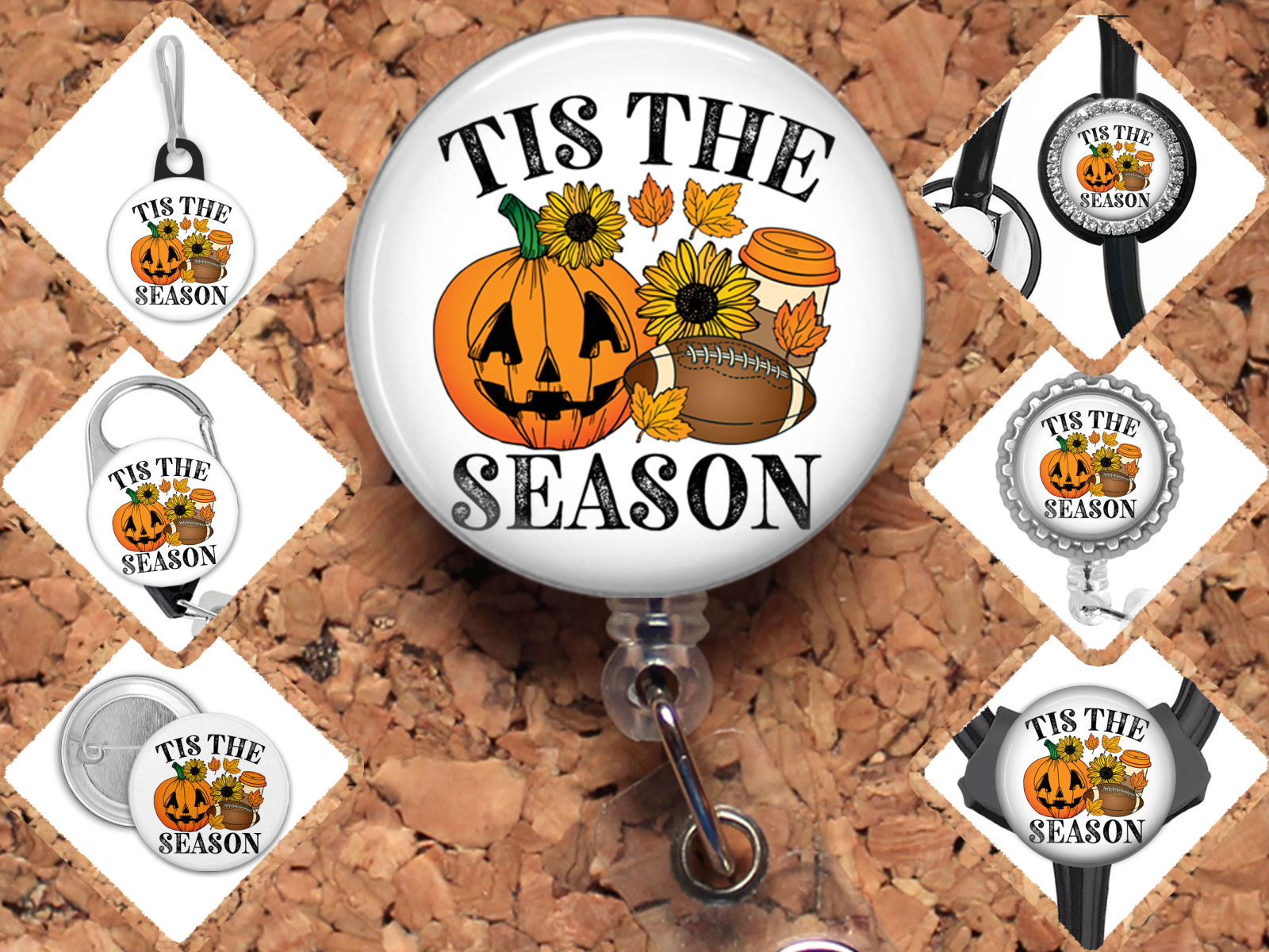 Fall Pumpkin and Football Badge Reel Id Holder, Badge Pin, Magnet, Lanyard, Stethoscope Tag 8213