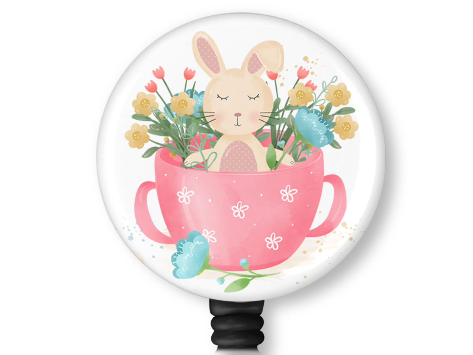 Floral Easter Bunny Badge Reel Id Holder 8134