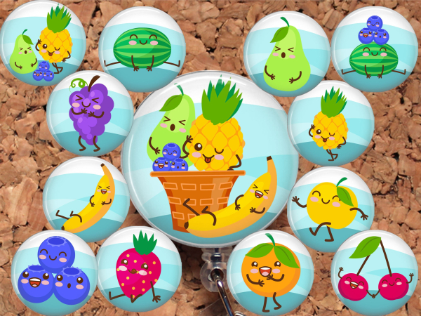 Fruit Badge Reel, Dietitian Retractable Lanyard Badge Holder, Carabiner, Id Holder, Stethoscope Tag, Badge Reel Fruit Basket Mylar B1067