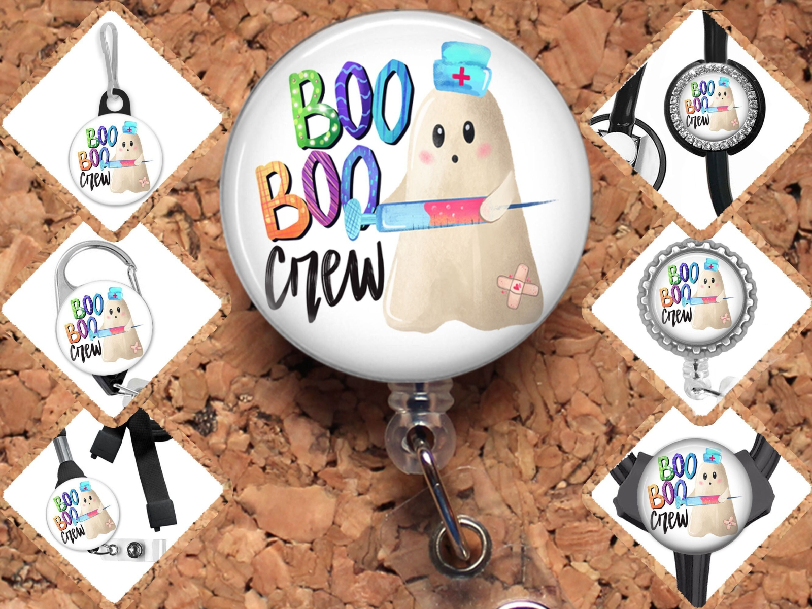 Halloween Medical Badge Reel, Fall Carabiner, Boo Boo Ghost Crew, Zipper Pull, Stethoscope ID Tag, Nurse Id Holder, 8025