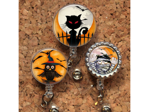 Halloween Retractable ID Badge Reel, Personalized Badge Holder, Id Badge Pull, Gift for Nurses, Gifts for Teachers, Wipe Clean Mylar