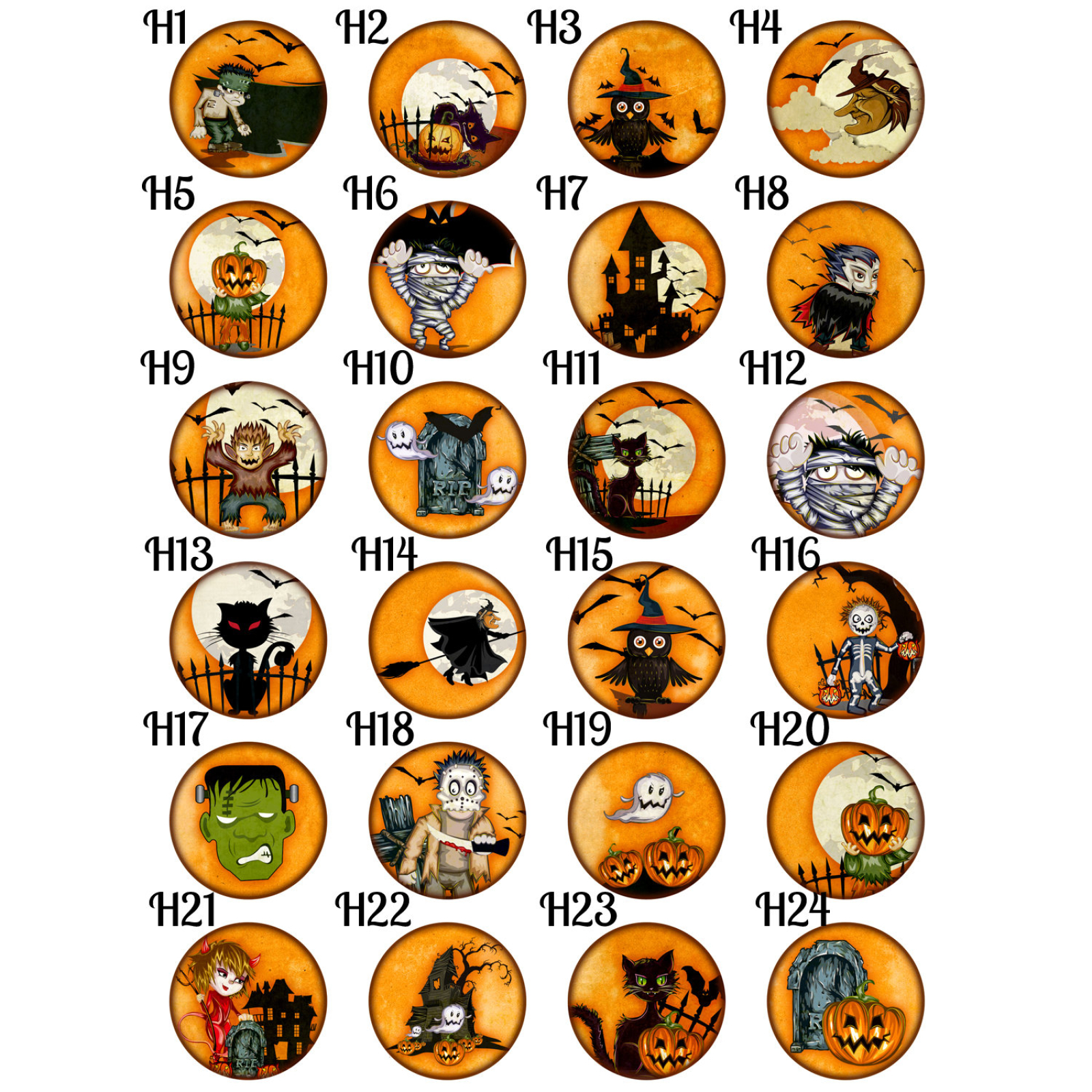 1”/Rhinestone – 1 inch image size centered in a ring of rhinestones