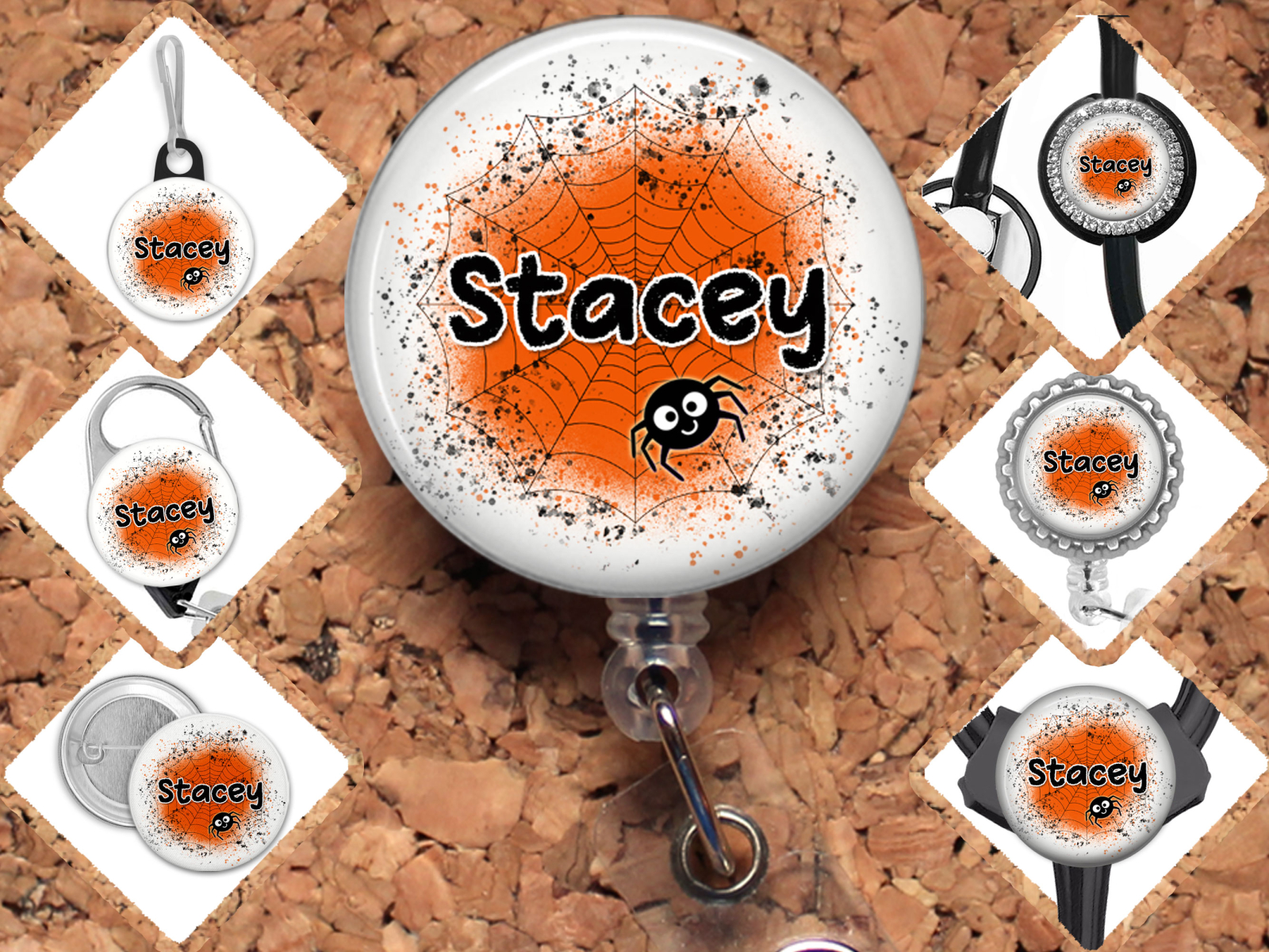 Halloween Spider Custom Name Badge Reel Id Holder, Badge Pin, Magnet, Lanyard, Stethoscope Tag 8197