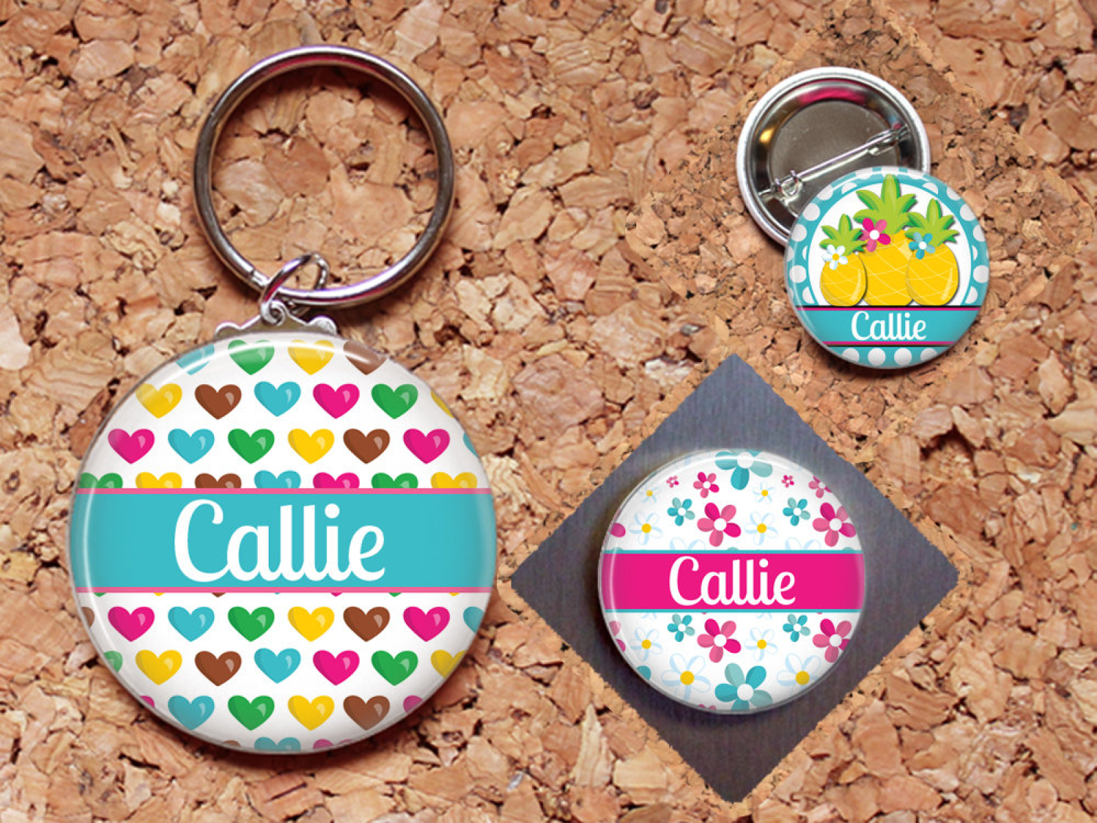 Hearts Magnet, Pineapple Key Chain, Flowers Pin, Refrigerator Magnet, Key Ring, Brooch Pin, Fridge Magnet, Key Holder, Stocking Stuffer,