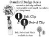 • clear available in belt, swivel or pinch clip