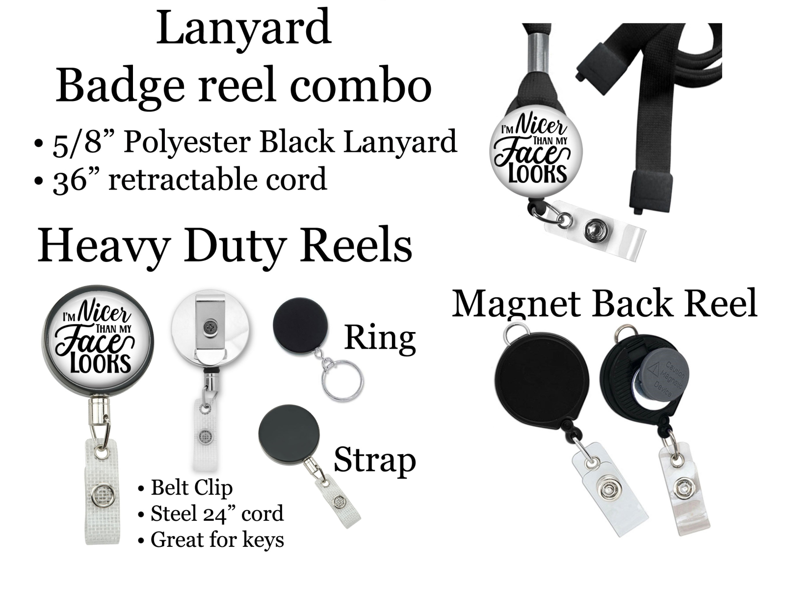 I'm Nicer than My Face Looks Sarcastic Badge Reel Id Holder 8137
