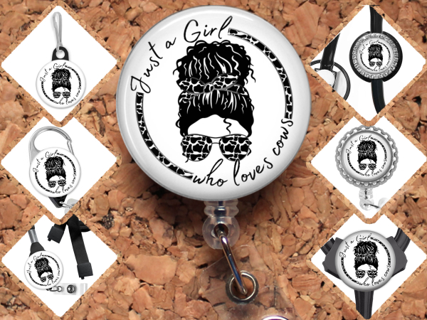 Just a Girl Who Loves Cows Badge Reel Id Holder, Badge Pin, Magnet, Lanyard, Stethoscope Tag 8180