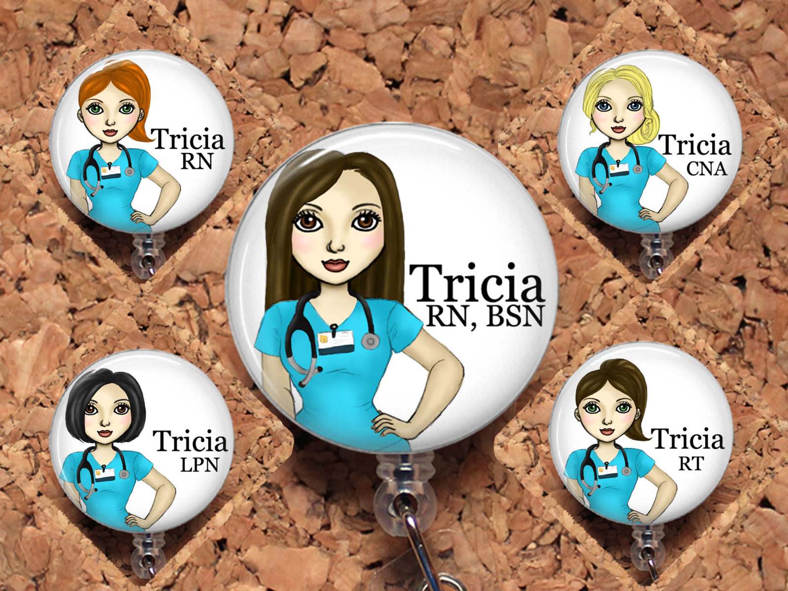 Badge Reel ID Holder, Lanyard, Carabiner, Stethoscope Tag, Brooch Pin, Zipper Pull, Key Ring, Magnet, Bookmark