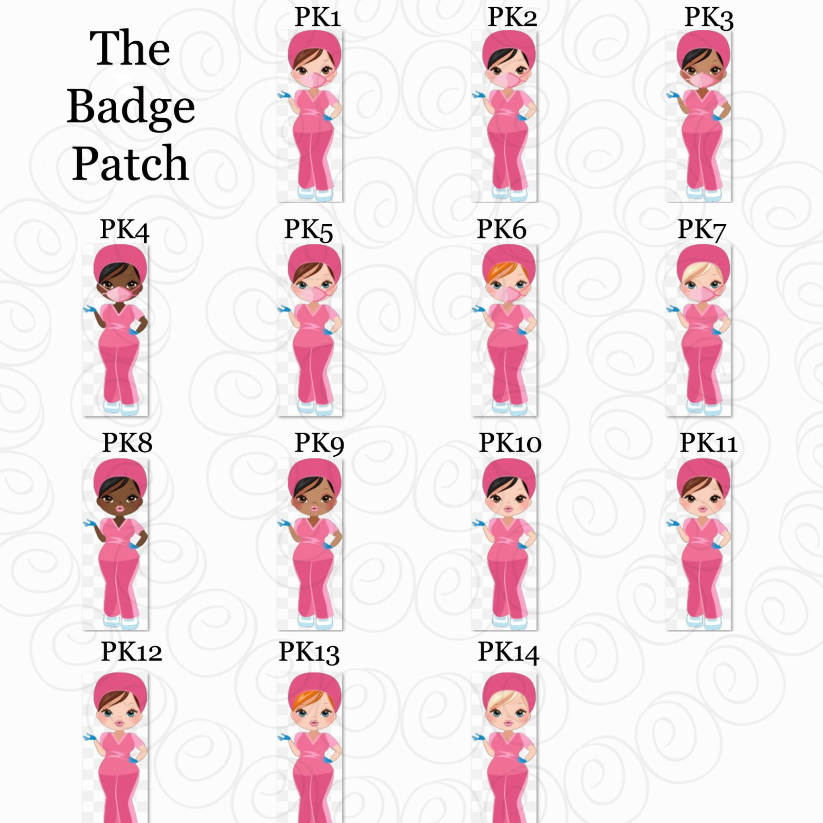 Nurse Badge Reel Retractable Lanyard Badge Holder Carabiner Nurse with Mask Essential Worker Gift Choose Hair and Scrub Color Mylar N1058