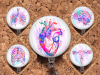 A Organ Badge Reel, Water Color Anatomy, Heart, Lungs, Ribs, Brain, Pelvis Retractable Badge Reel, Lanyard, StethoscopeTag, Carabiner, Mylar