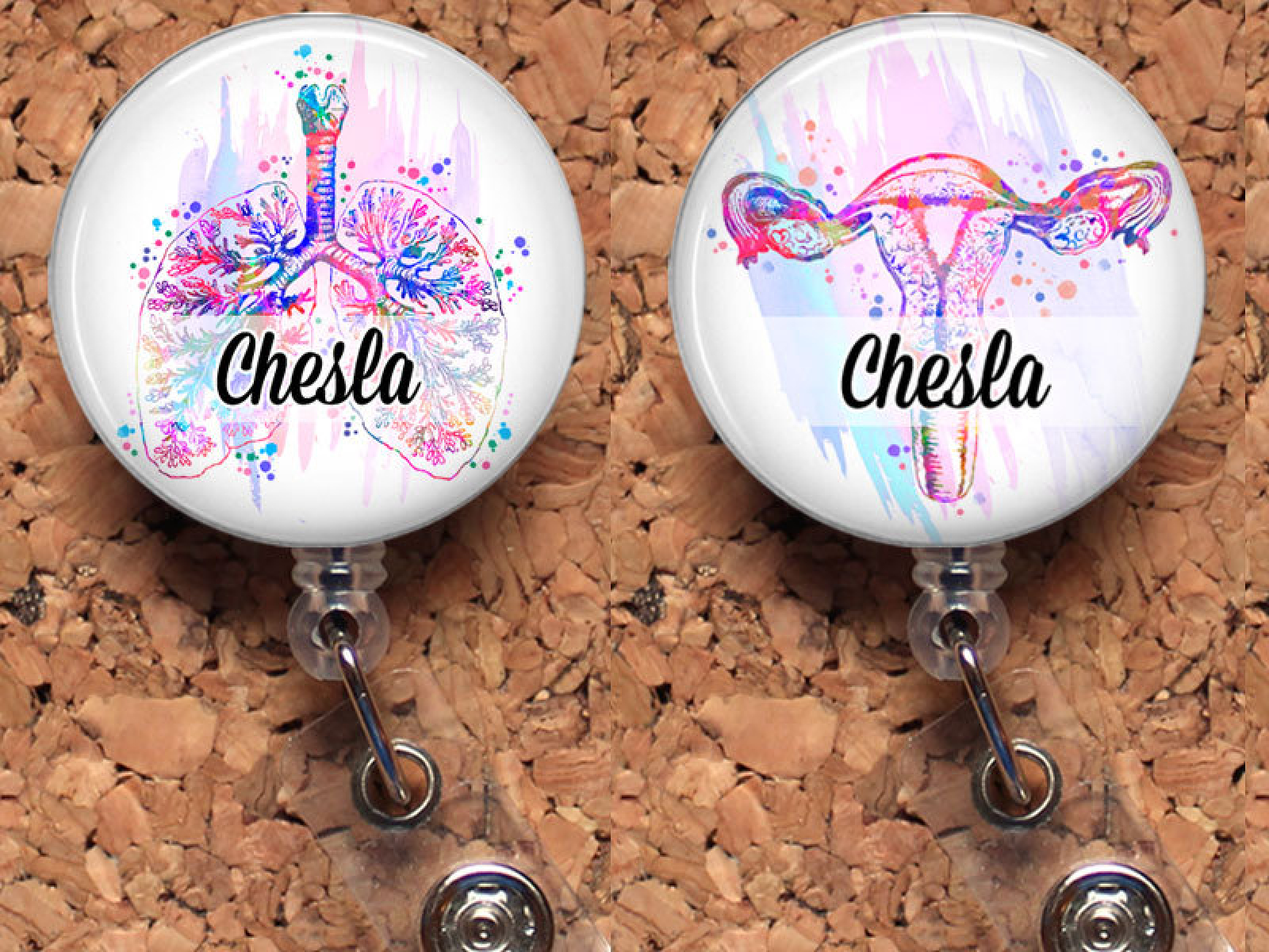 Organ Badge Reel, Water Color Anatomy, Heart, Lungs, Ribs, Brain, Uterus Retractable Badge Reel, Lanyard, Steth Tag, Personalized, Mylar
