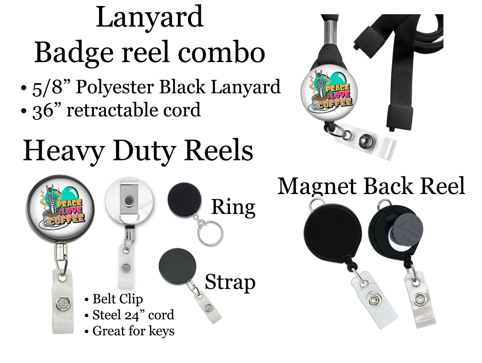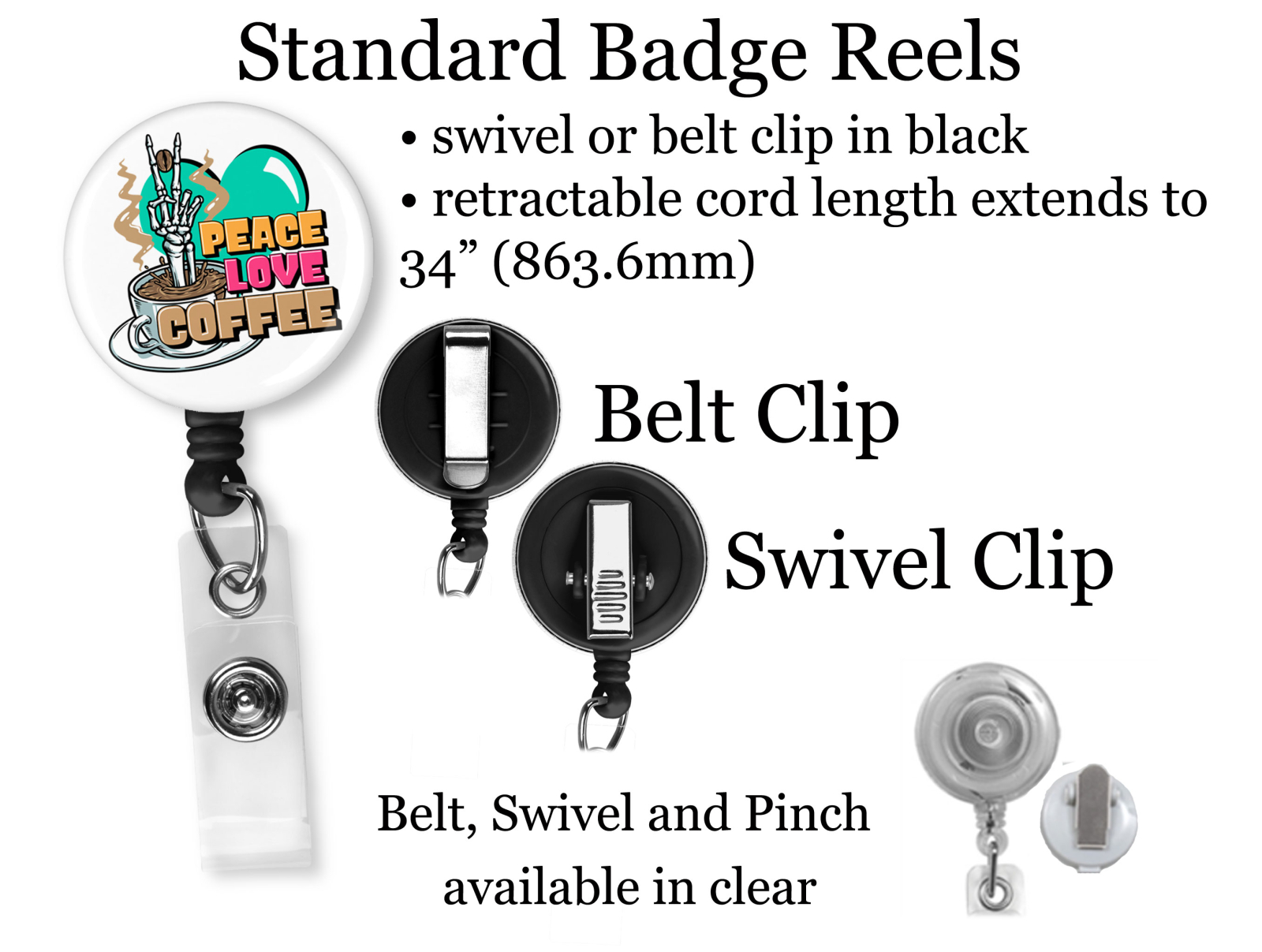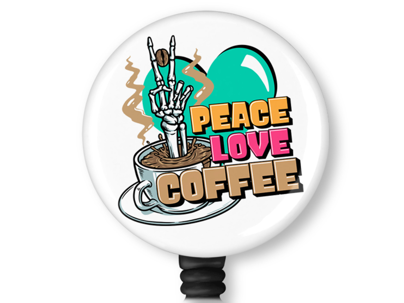 Peace Love Coffee Skeleton Badge Reel Id Holder 8129