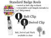 • clear available in belt, swivel or pinch clip
