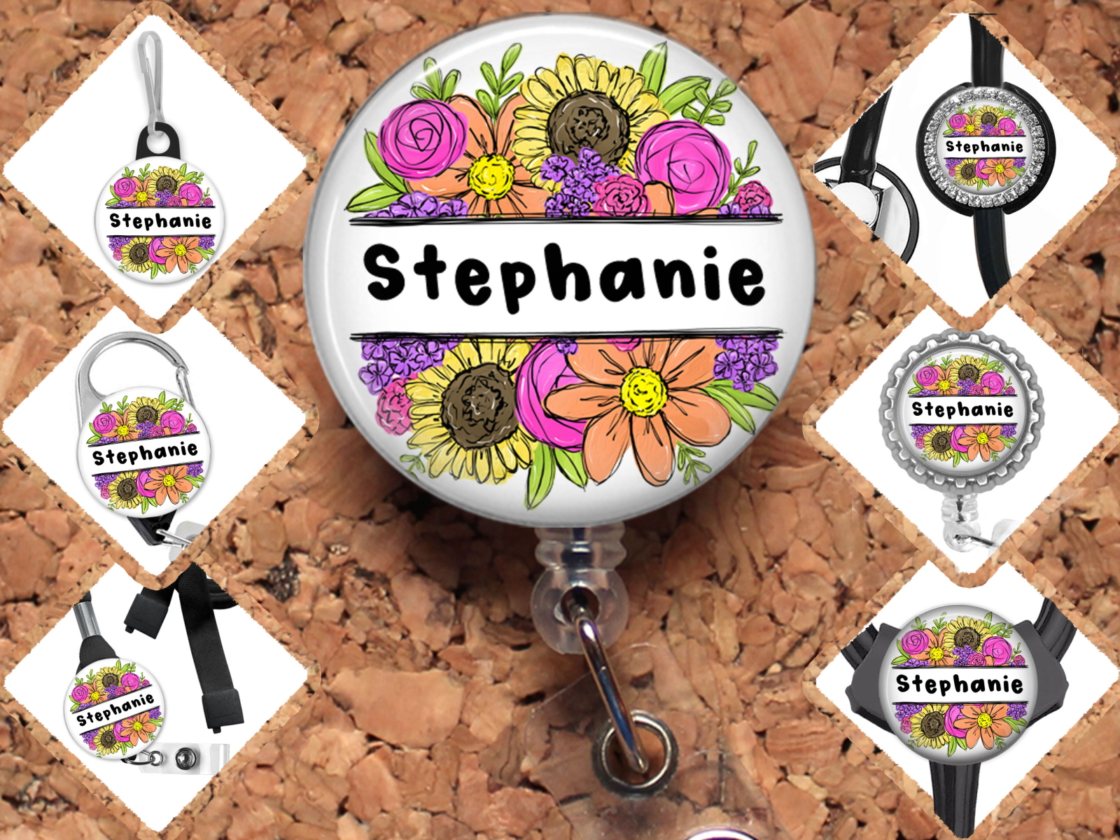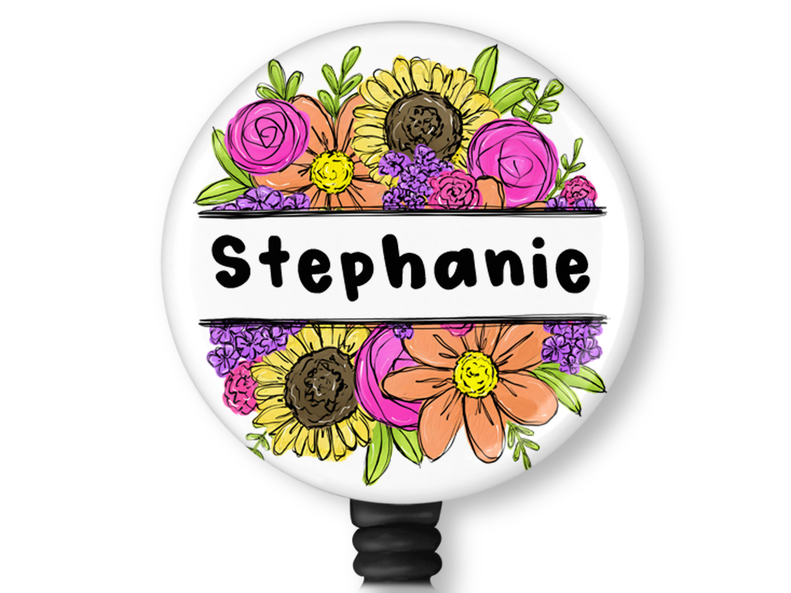 Personalized Name Flower Badge Reel Id Holder 8154