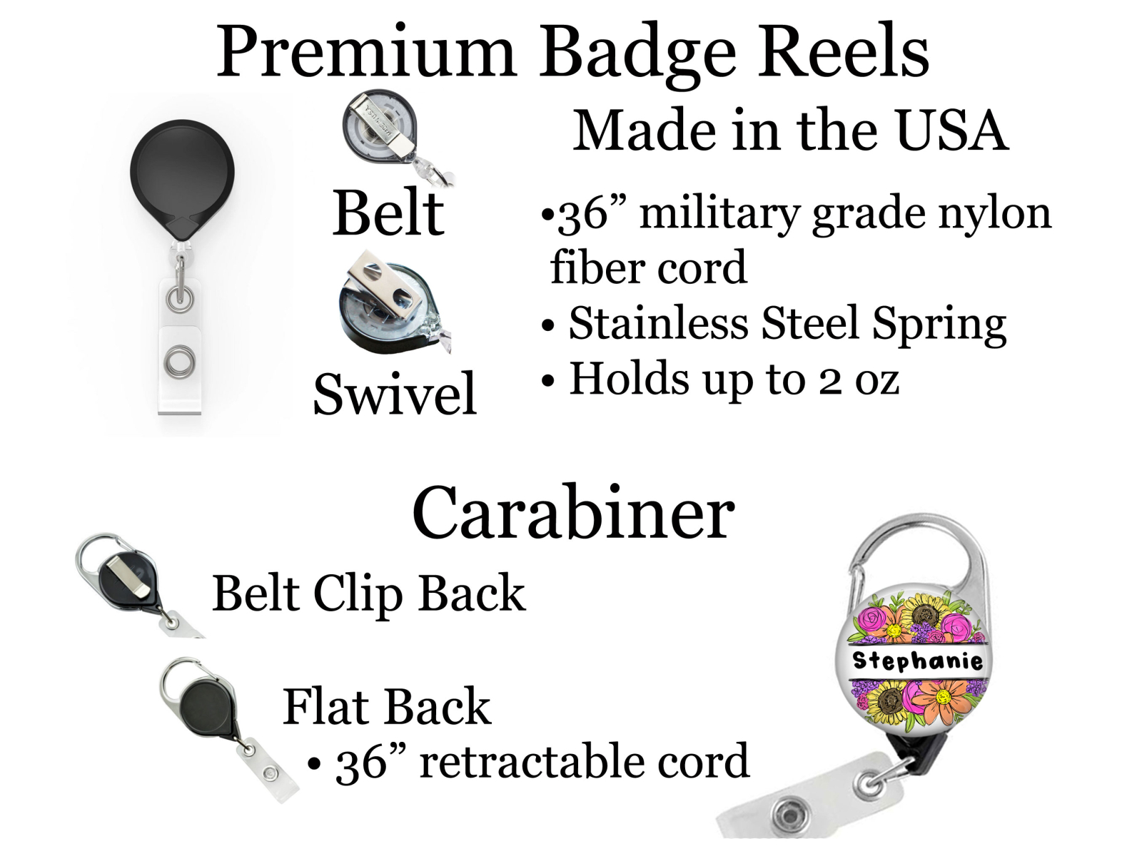 • 36" retractable military grade type-II braided nylon fiber cord holds up to 2oz.