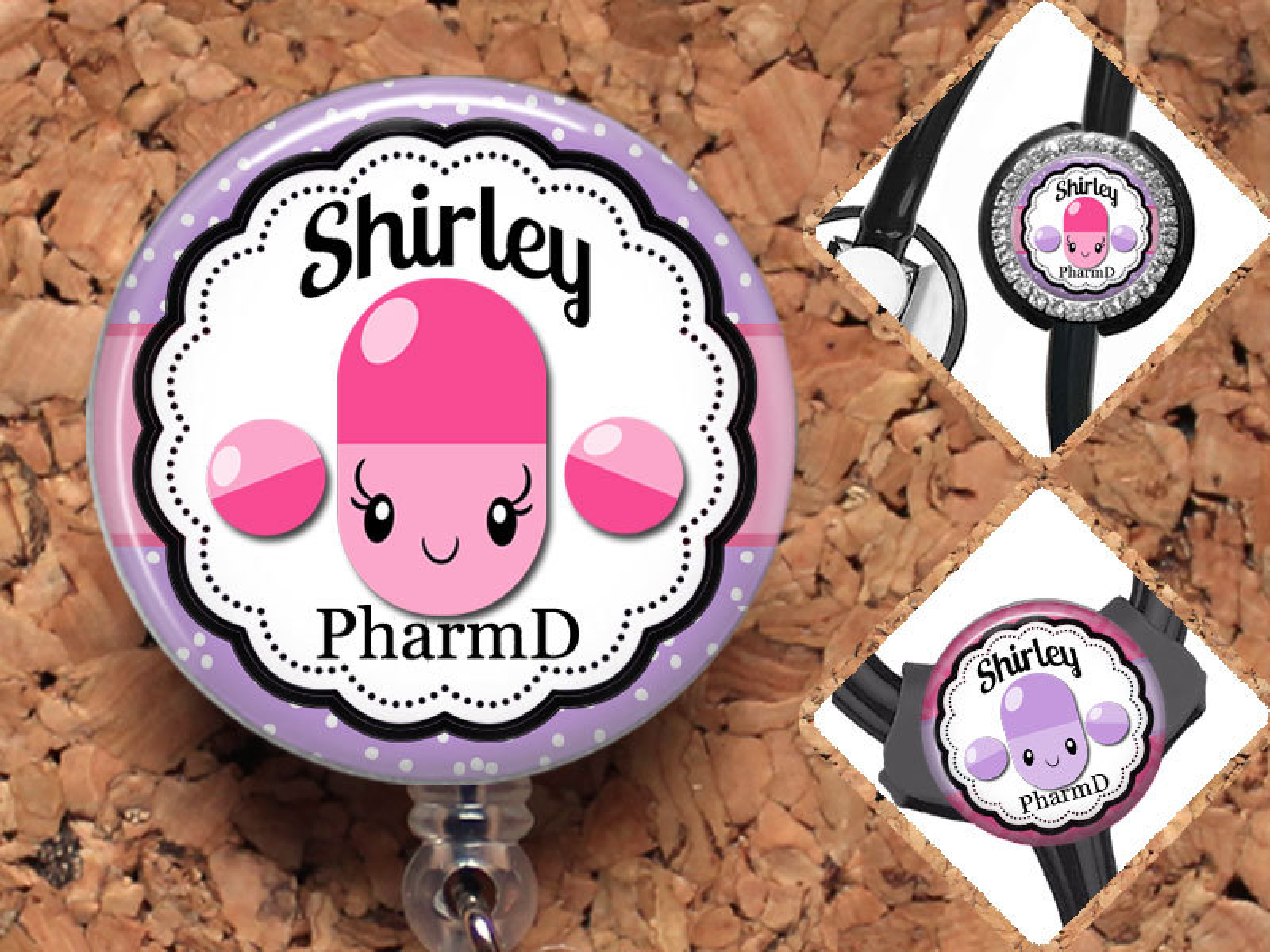 Pharmacist Badge Reel,Pills Personalized Retractable ID Holder, Lanyard, Badge Pull, Card Holder, Carabiner, Stethoscope Tag, Mylar