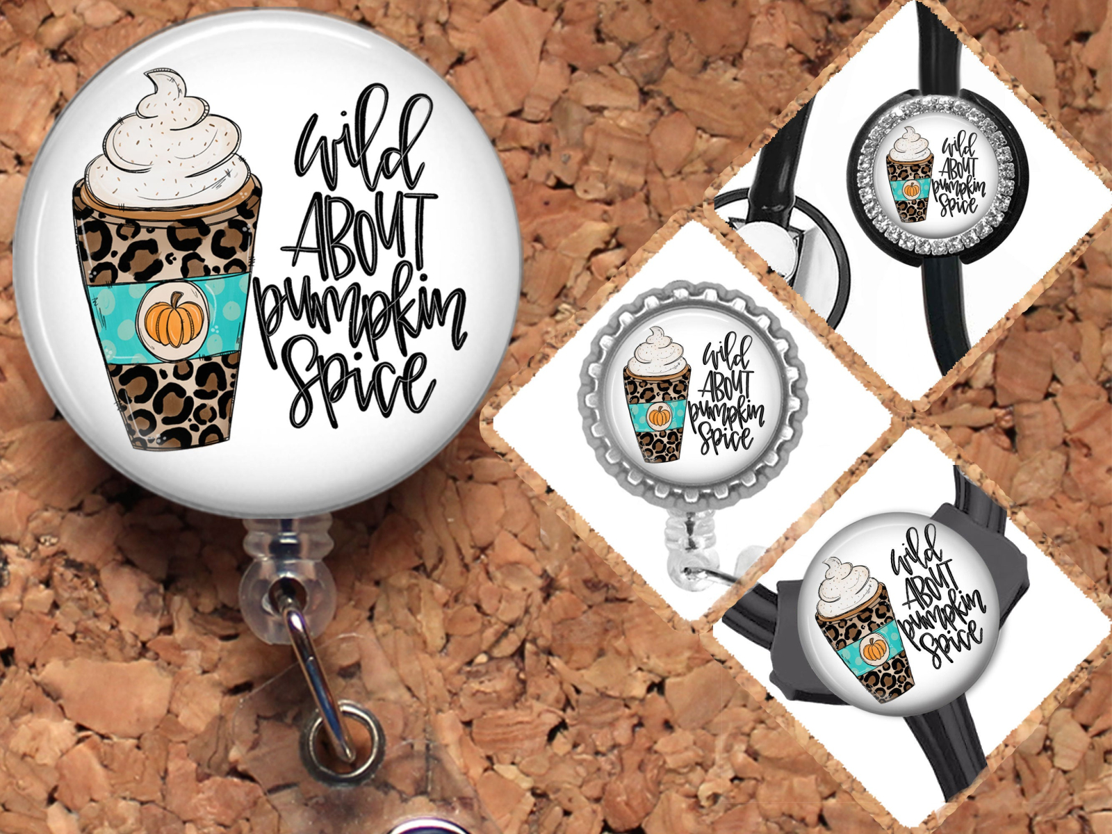 Pumpkin Spice Badge Reel Retractable Lanyard Badge Holder Carabiner Id Holder Stethoscope Tag Nurse Badge Reel Gift Mylar B1105