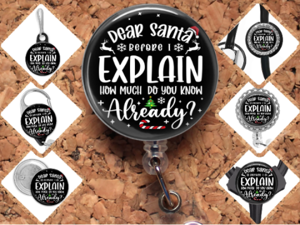 Santa I can Explain Badge Reel Id Holder, Badge Pin, Magnet, Lanyard, Stethoscope Tag 8205