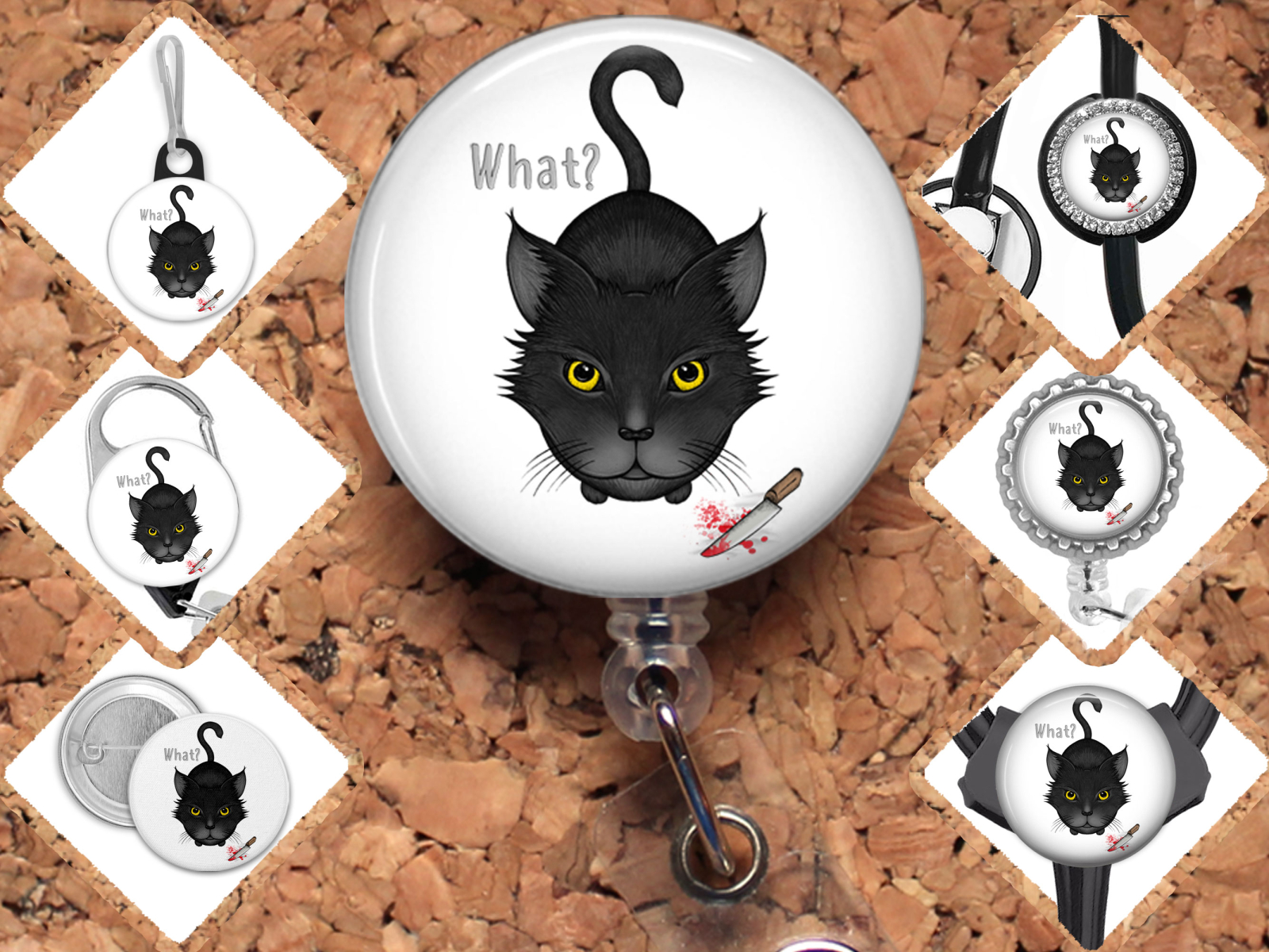 Scary Cat Badge Reel Id Holder, Badge Pin, Magnet, Lanyard, Stethoscope Tag 8232