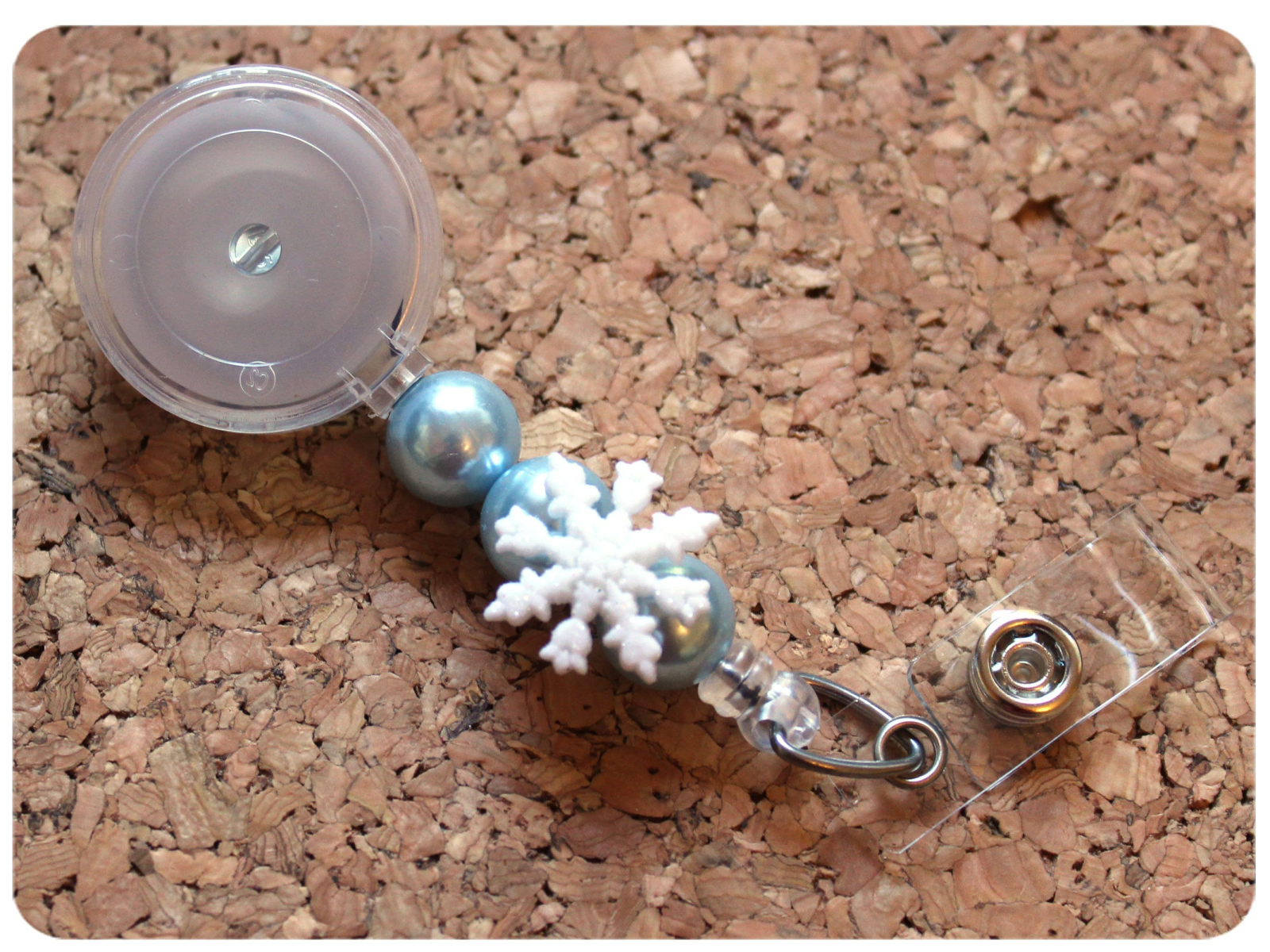 Snowflake Interchangeable Badge Reel Base, Winter Beaded Retractable ID Holder, Switchable Badge Reel or Lanyard