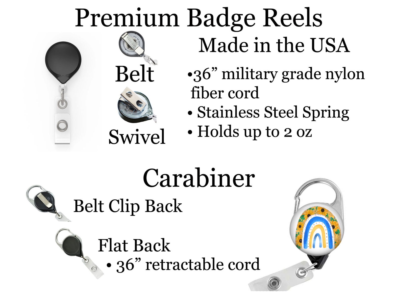 • 36" retractable military grade type-II braided nylon fiber cord holds up to 2oz.