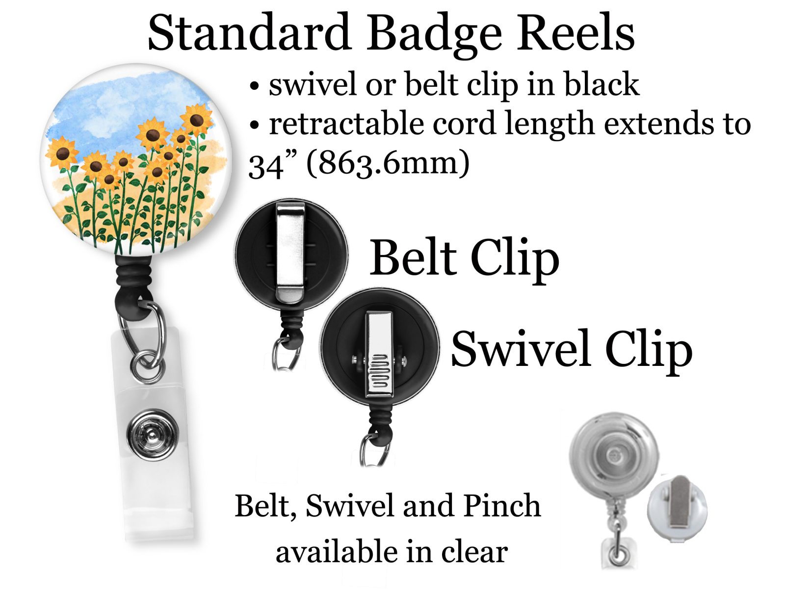 • clear available in belt, swivel or pinch clip