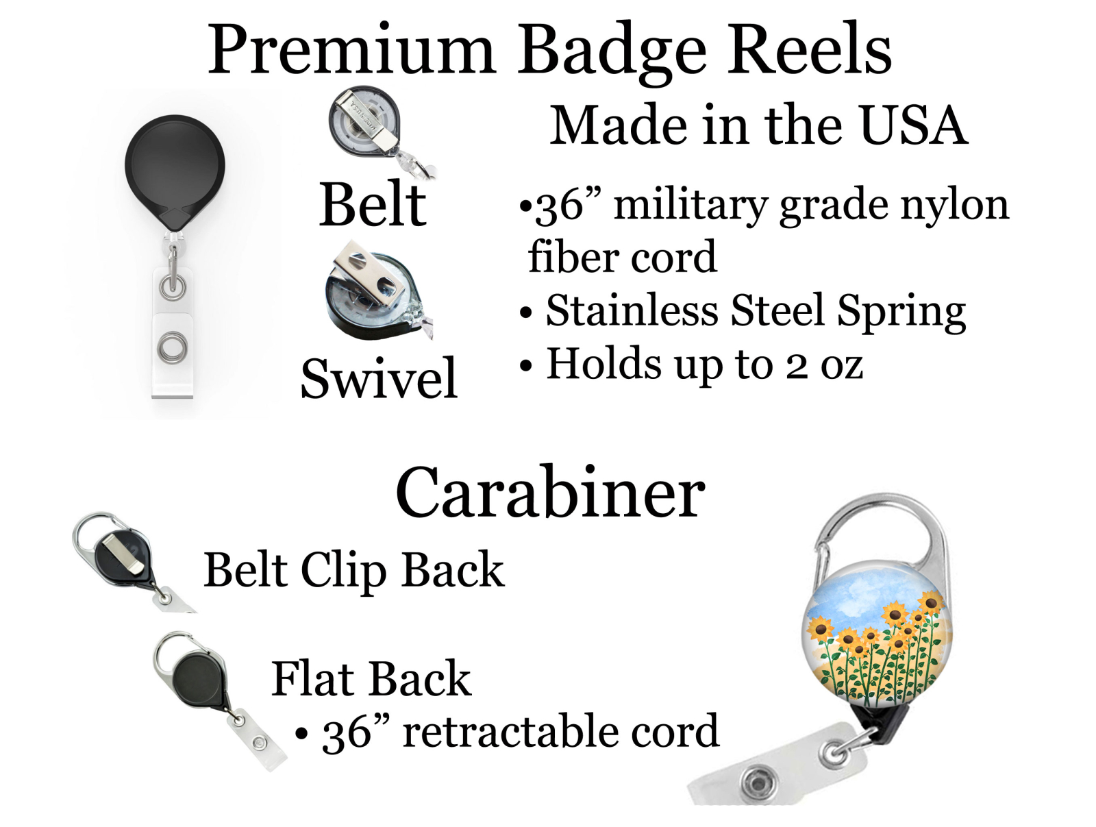 • 36" retractable military grade type-II braided nylon fiber cord holds up to 2oz.