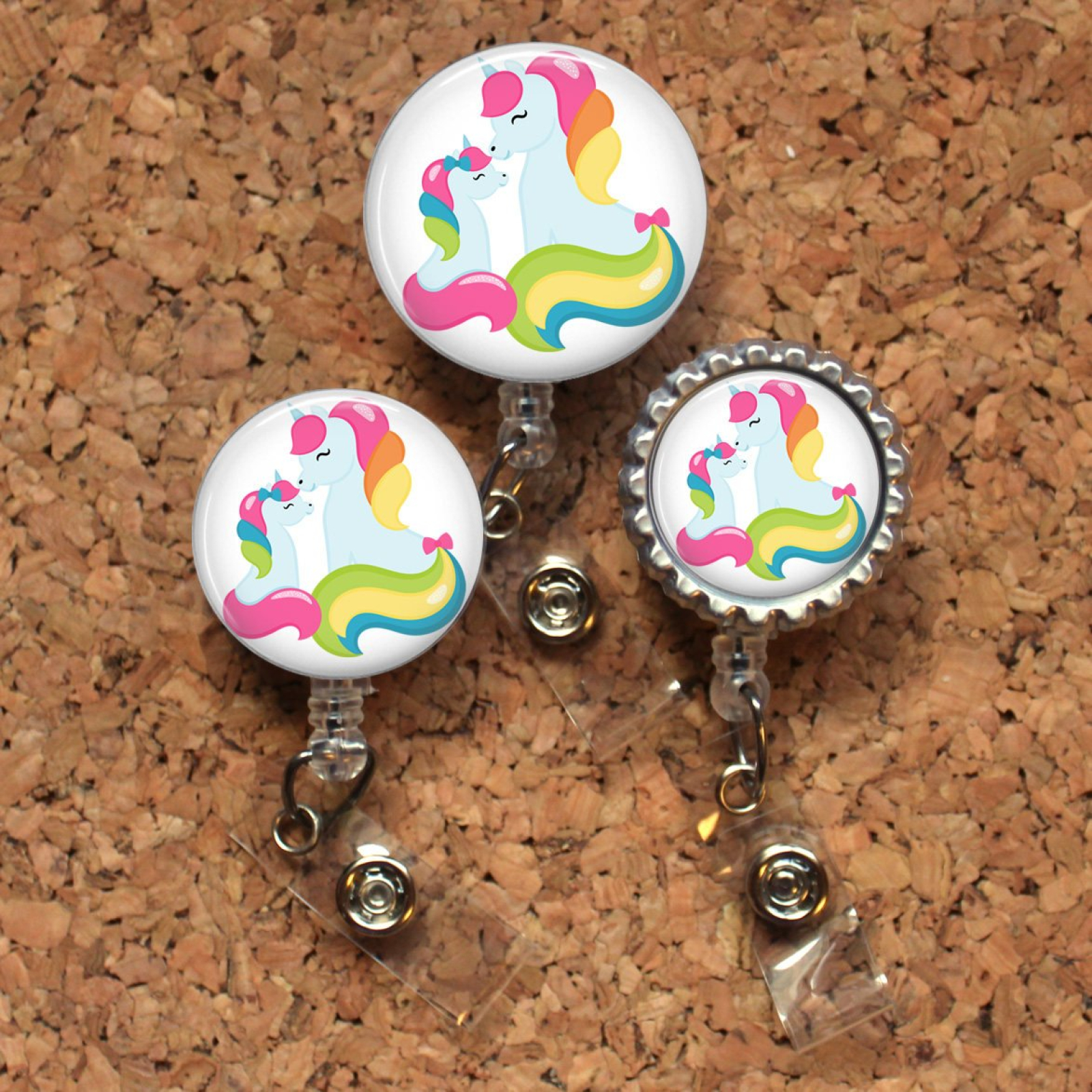 Unicorn Badge Reel, Mother and Baby Unicorn, Lanyard, Retractable ID Name Holder, Nurse Gift, Pediatric Badge Reel, Nicu, MBU, Mylar