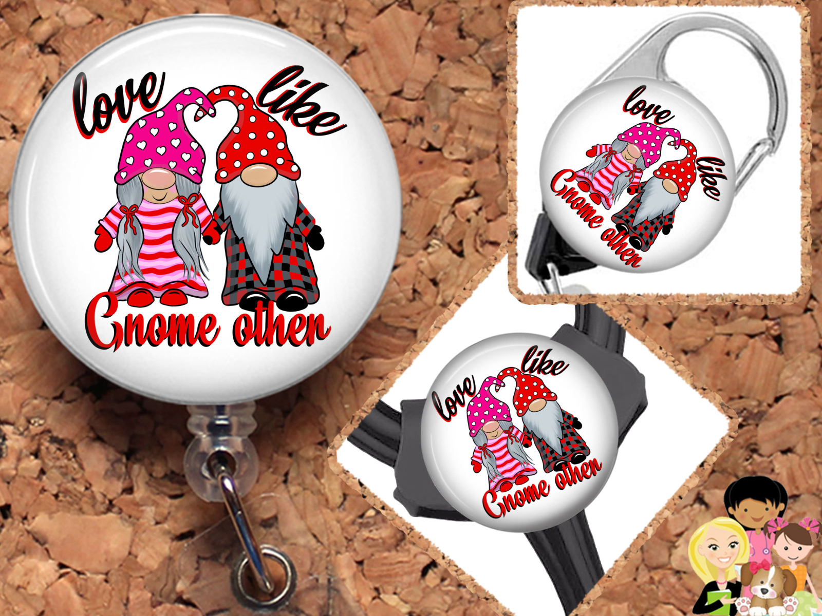 Valentine Gnome Badge Reel, Fall Retractable Lanyard Badge Holder, Carabiner, Id Holder, Stethoscope Tag Rhinestone Badge Reel Mylar B1063