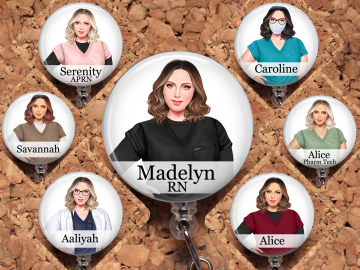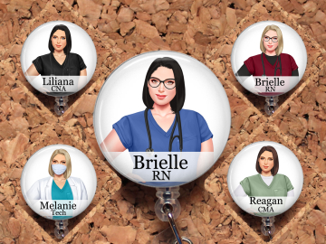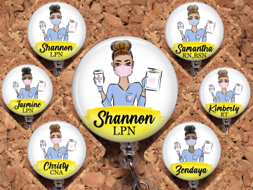 Medium Curly Haired Nurse Badge Reel Id Holder 8111
