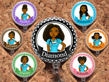 Black Nurse Badge Reel, Personalized Retractable ID Holder, African American Customized Lanyard, Natural Hair Carabiner, Stethoscope, Mylar