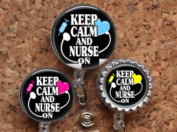 Badge Reel - Keep Calm and Nurse On - Choice of Colors - Retractable Name Holder - Nurse Bade Reel - Medical Badge Reel - Id Holder, Mylar